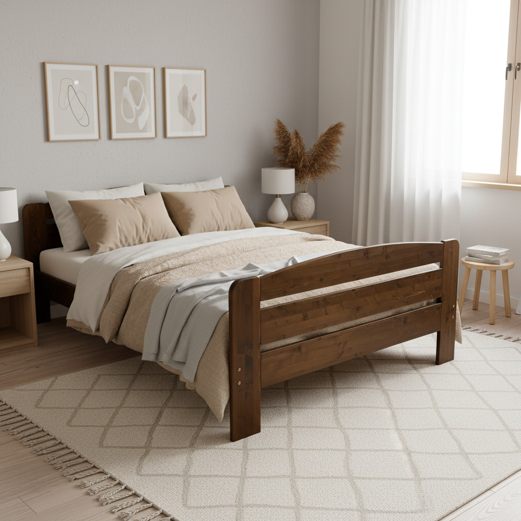 Acest produs fabricat in Romania, este realizat folosind lemn molid 100% certificat FSC. Este un pat confortabil in stil contemporan, care se potriveste cu o gama larga de stiluri de design interior. Arata fantastic intr-un cadru modern, vintage sau traditional.
