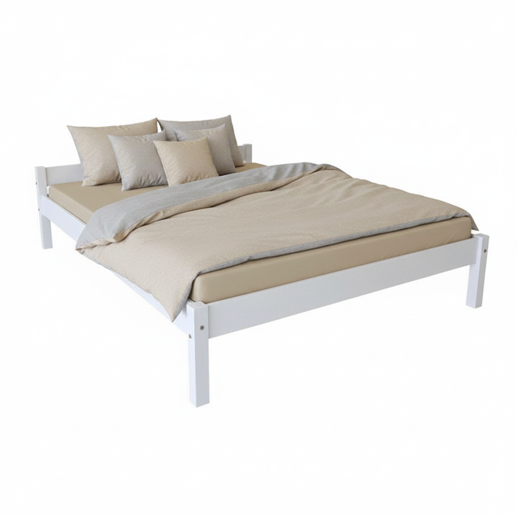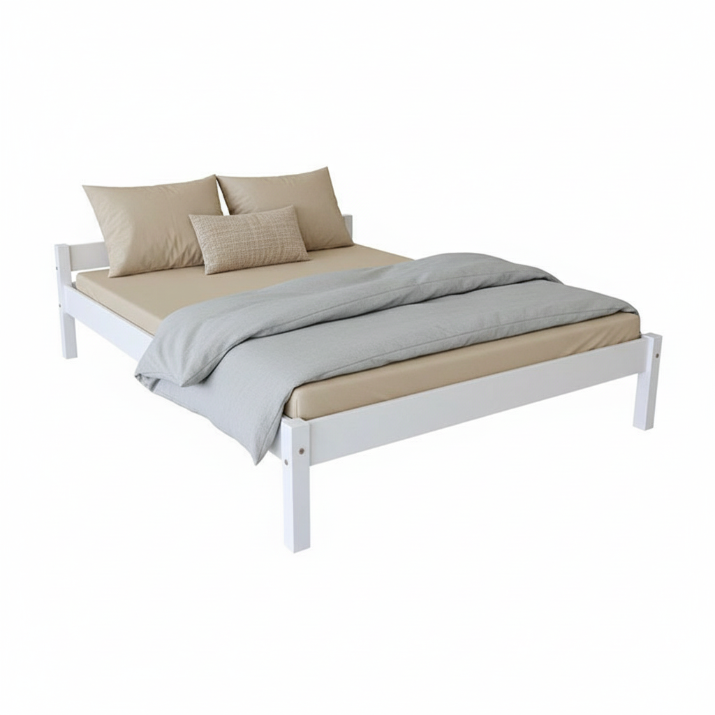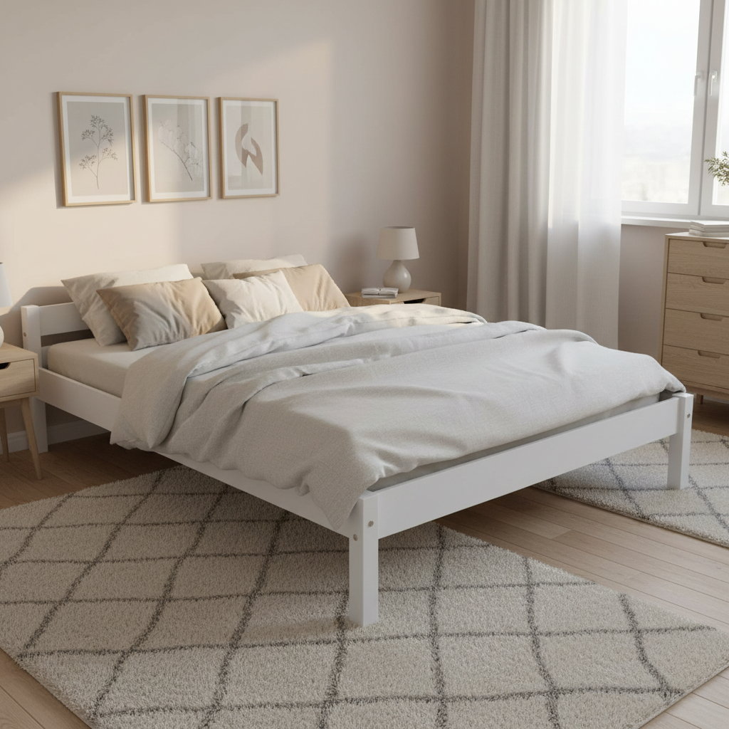 Pat matrimonial Transilvan, Sally, Lemn Masiv, Model 2/1, 140x200 cm, Alb