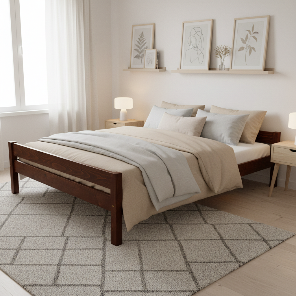 Acest pat se remarcă prin designul său clasic, minimalist și elegant, adaptându-se cu ușurință în orice tip de decor. Liniile sale simple și finisajul natural îl fac potrivit atât pentru interioare moderne, cât și pentru cele tradiționale, transformând orice cameră într-un spațiu armonios și primitor.