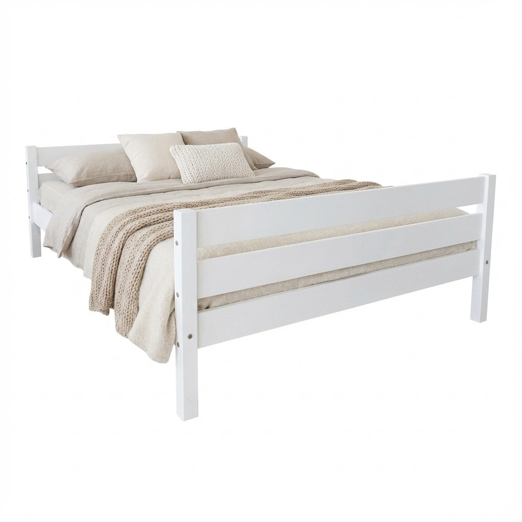 Patul este realizat din lemn masiv de molid 100%, certificat FSC, garantând durabilitatea și respectul pentru mediul înconjurător. Acest material de înaltă calitate asigură o rezistență de lungă durată și o stabilitate excelentă, făcând din acest pat o investiție pe termen lung.