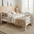 Designul patului include o tăblie de cap formată dint 3 scânduri, cu o înălțime de 66 cm și o tăblie de picioare formată din 3 scănduri, având o înălțime de 66 cm. Aceste detalii oferă un echilibru vizual și structural, asigurând atât confort cât și stabilitate. Înălțimea șezutului de 34 cm este optimă pentru o utilizare perfectă.