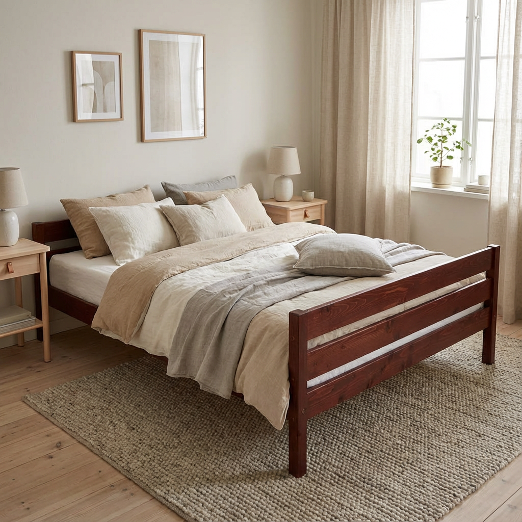 Acest pat se remarcă prin designul său clasic, minimalist și elegant, adaptându-se cu ușurință în orice tip de decor. Liniile sale simple și finisajul natural îl fac potrivit atât pentru interioare moderne, cât și pentru cele tradiționale, transformând orice cameră într-un spațiu armonios și primitor.