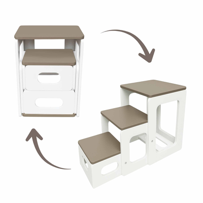 Scaun Scara, 2 in 1, Transformabil, Tommy, Transilvan, Lemn Stratificat, 40x43x60 cm si 86x43x60 cm, Alb-Cappuccino