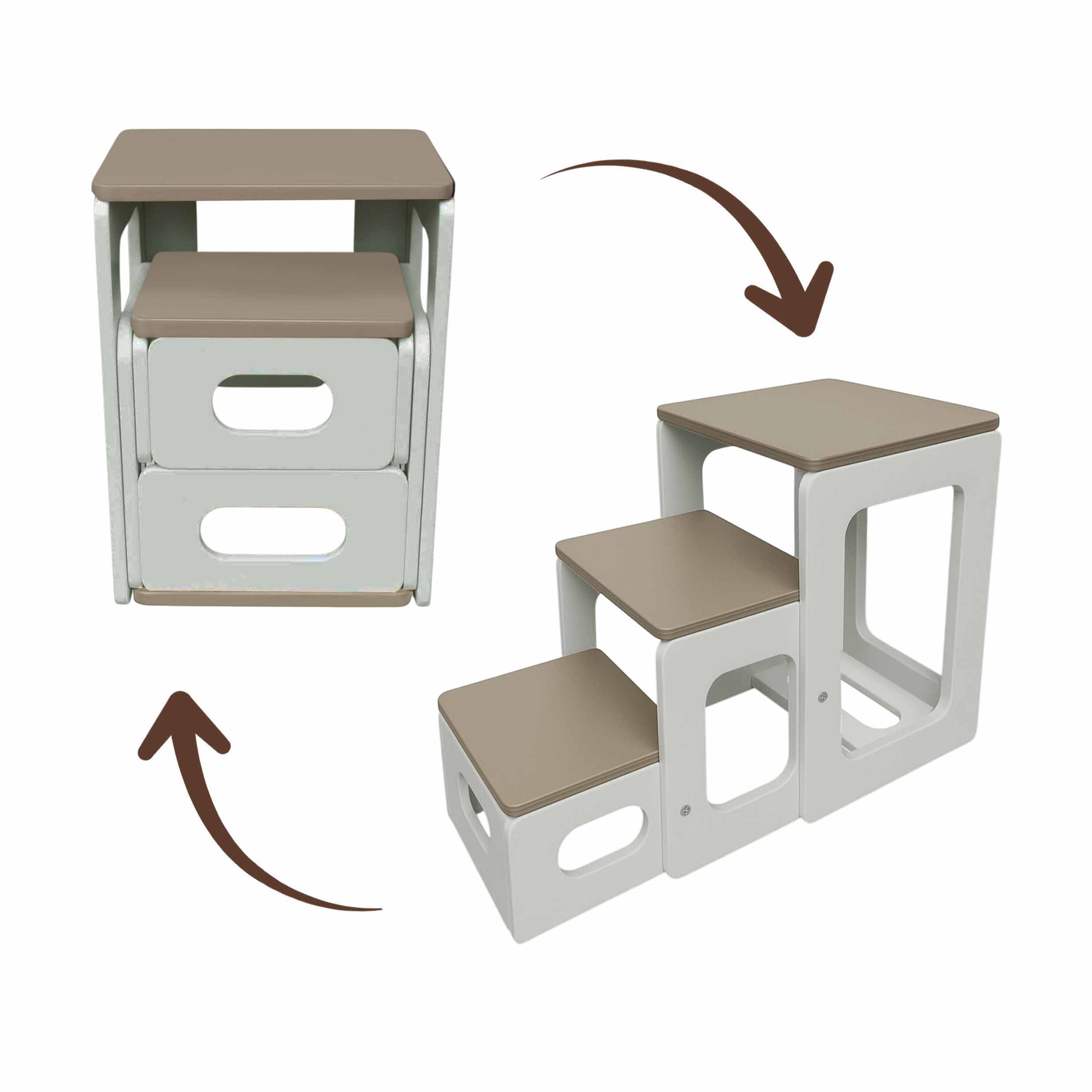 Scaun Scara, 2 in 1, Transformabil, Tommy, Transilvan, Lemn Stratificat, 40x43x60 cm si 86x43x60 cm, Gri-Cappuccino