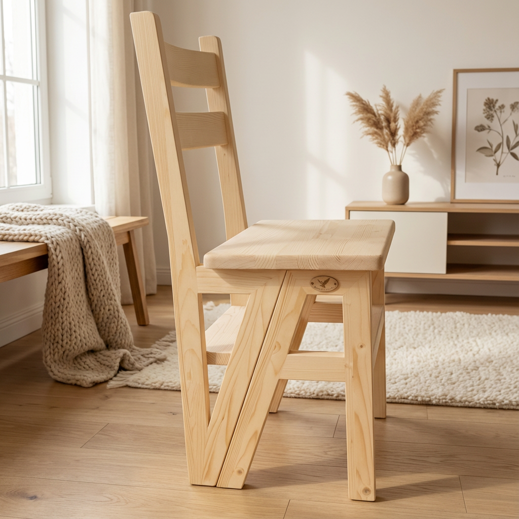 Utilizări Recomandate: Scaunul Scara 2 în 1 din Lemn Masiv este perfect pentru: