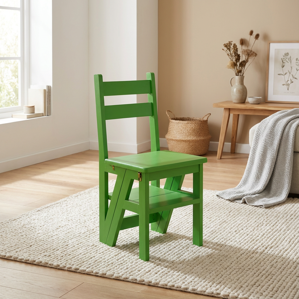 2 în 1: Scaun și Scara: Odată cu acest produs ingenios, obțineți nu doar un scaun confortabil, ci și o scară practică. Transformarea este simplă și rapidă, oferindu-vă acces ușor la locurile înalte din casă.