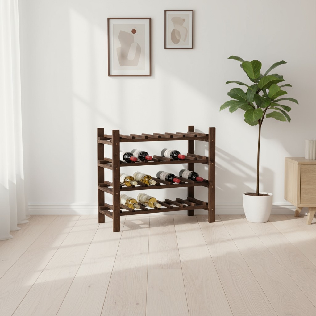Acest suport pentru sticle de vin Transilvan este realizat din lemn masiv de pin, atent lucrat și finisat, fiind o alegere ideală pentru pasionații de vinuri care doresc să-și organizeze colecția cu stil. Lemnul de pin nu este doar estetic, ci și recunoscut pentru durabilitatea sa naturală, ceea ce îl face perfect pentru susținerea sticlelor de vin pe termen lung.